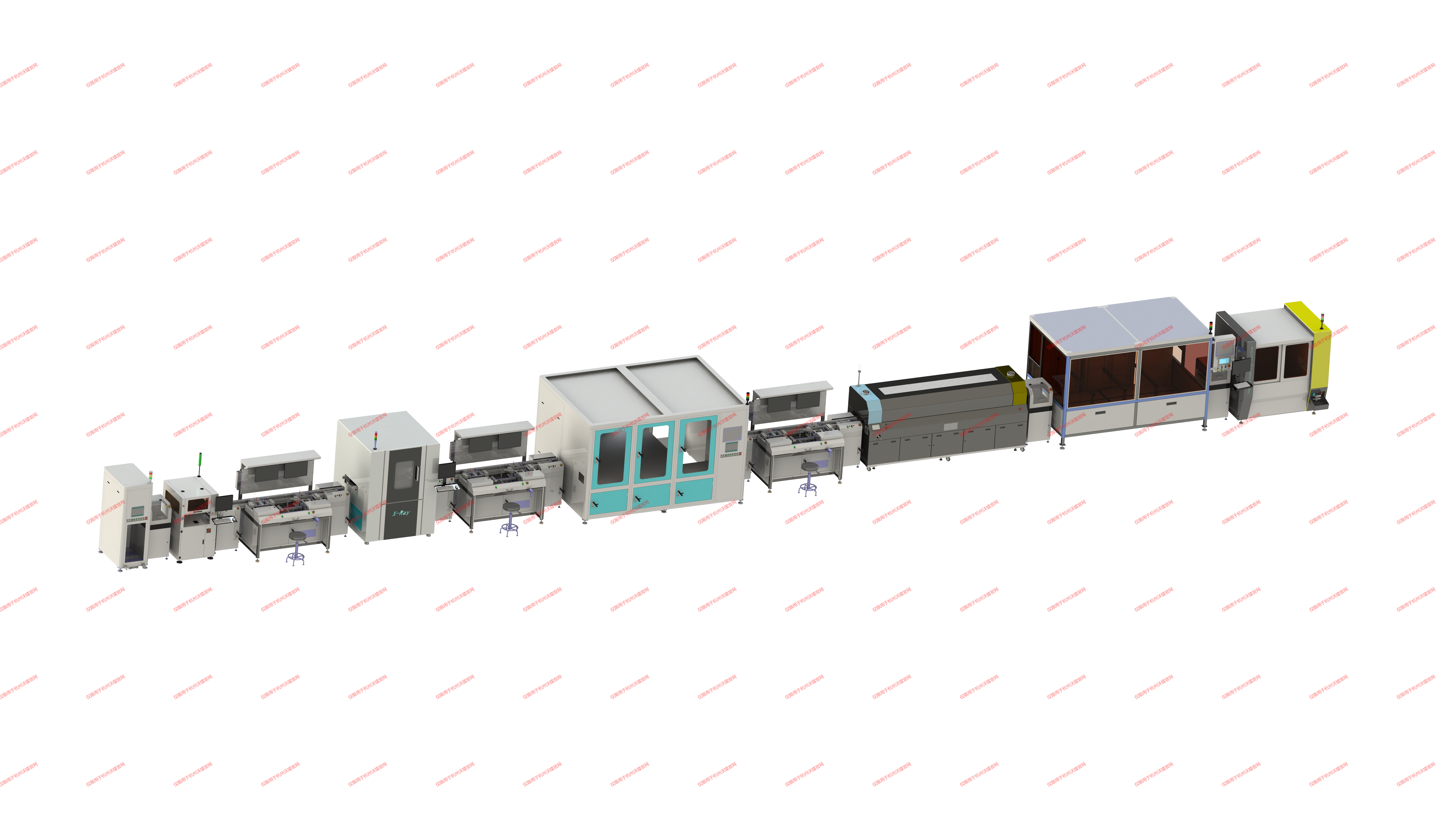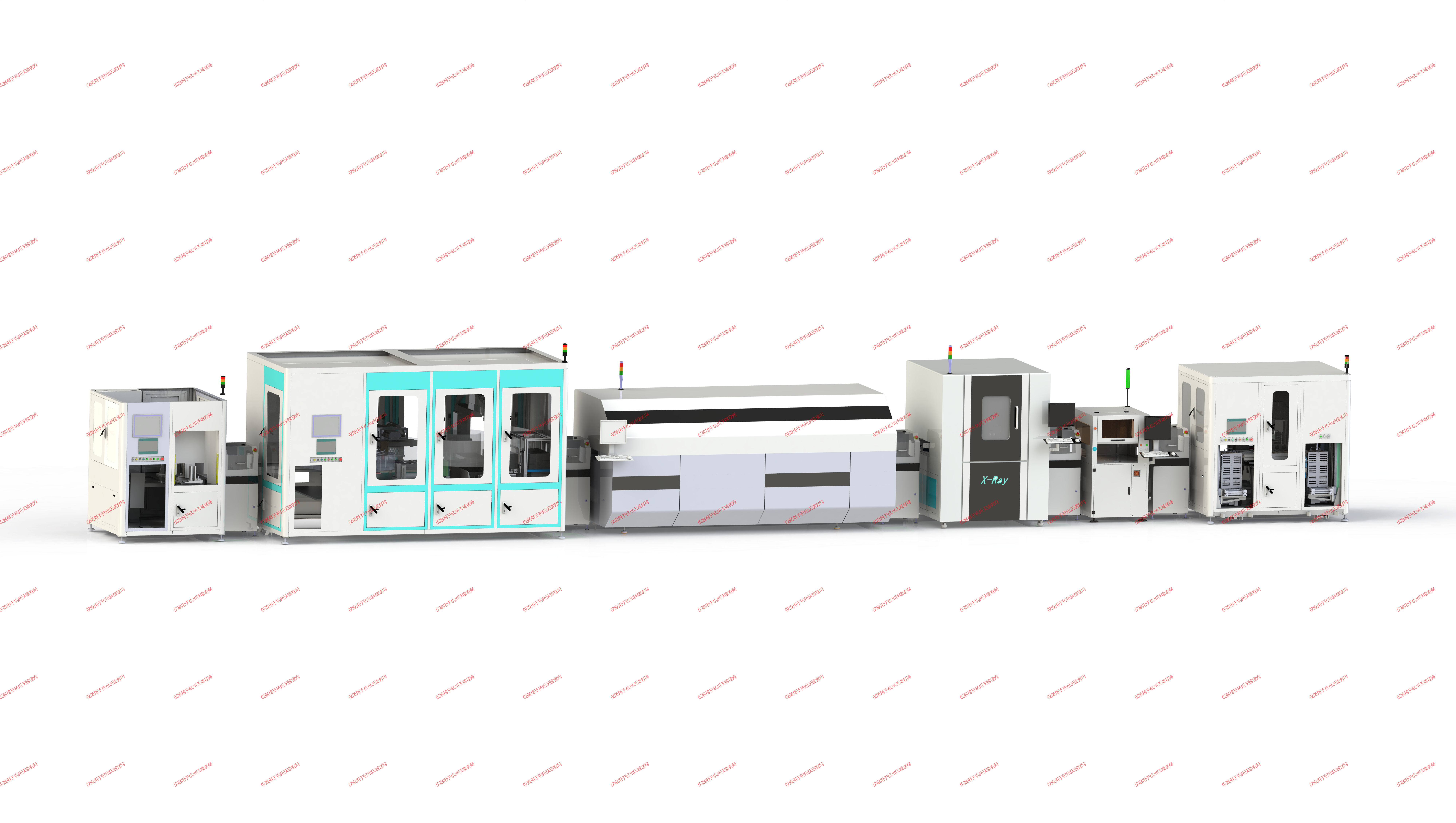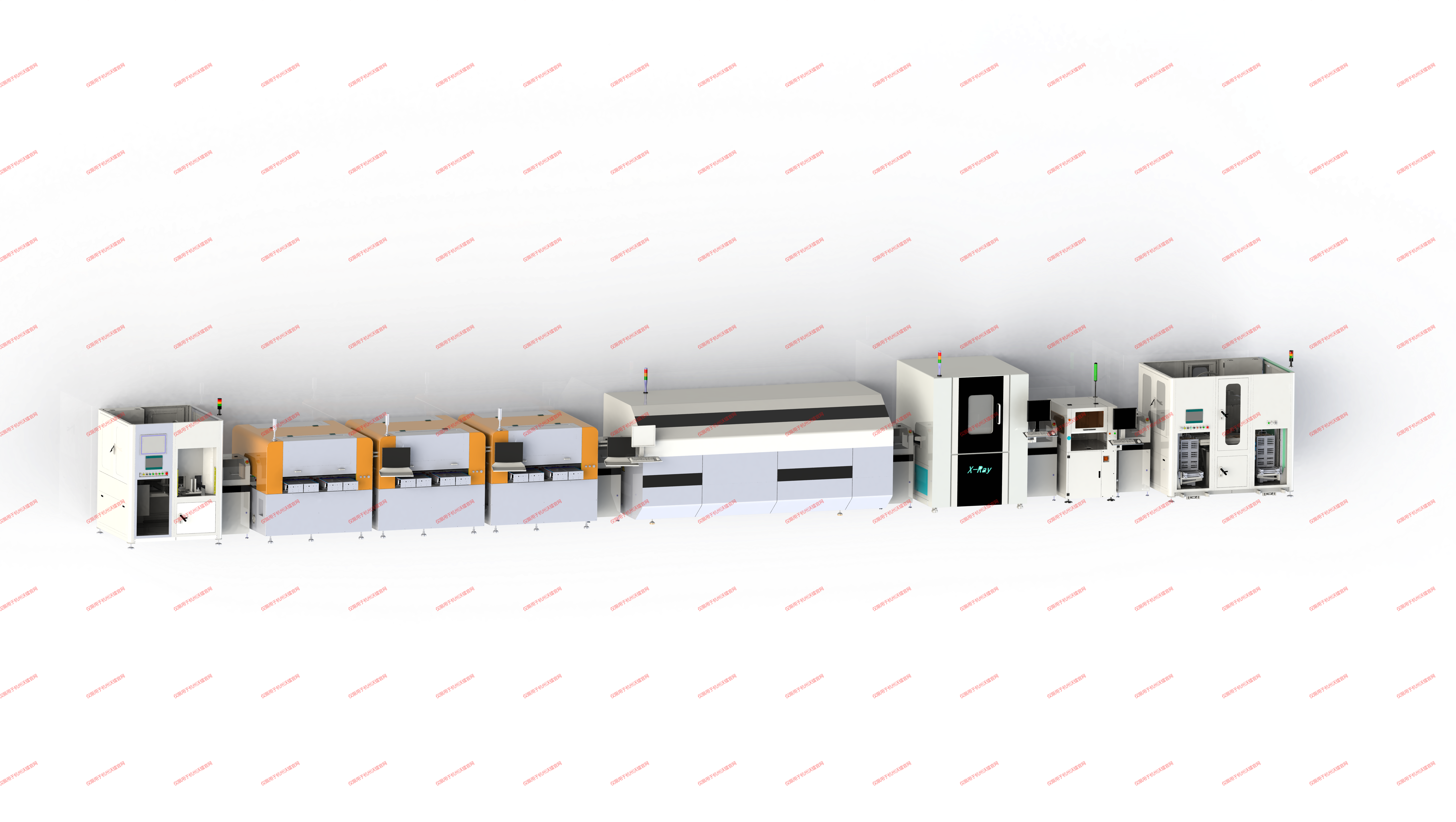 可实现对功率器件HPD、HP1、DC6等产品从封装到测试整条产线的自动化生产。整条产线根据生产工艺采用分段式布局,提高各段产线的设备使用效率。产线上下料方式:兼容AGV或人工小车来料。产线整体采用模块化设计,各工位可单独移进或移除,方便产品的工艺、节拍等的变更。产线可通过更换工装兼容不同的产品。产线支持SECS/GEM、SMEMA通讯接口等协议。